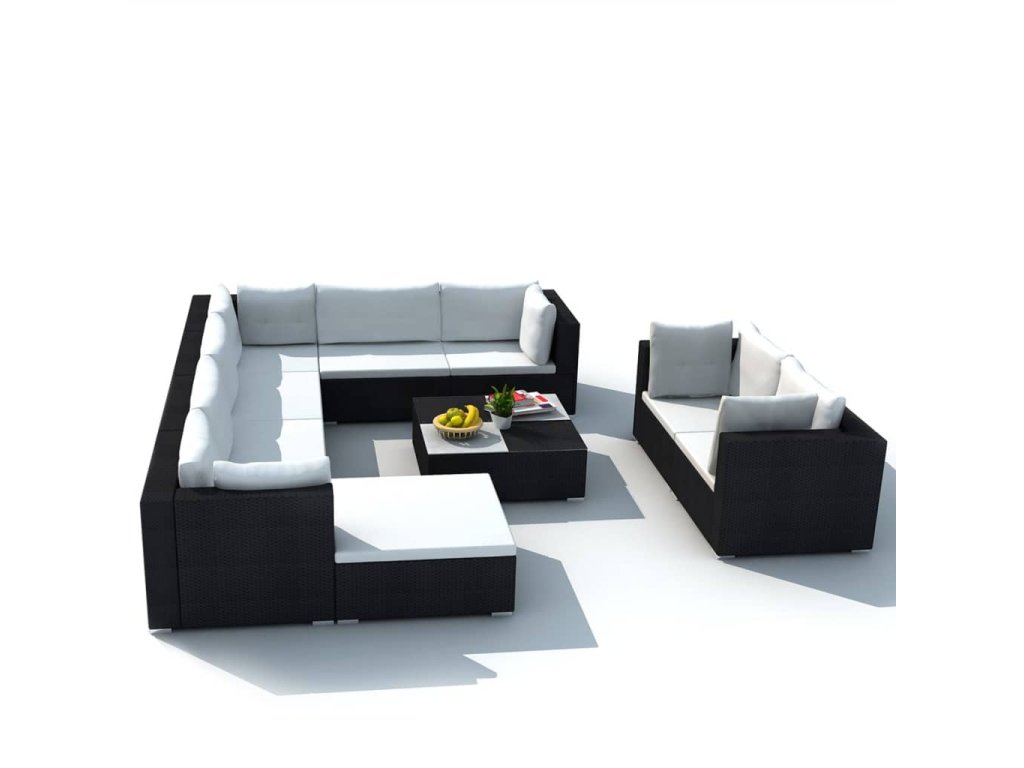 10dílná zahradní sedací souprava s poduškami polyratan černá 41876