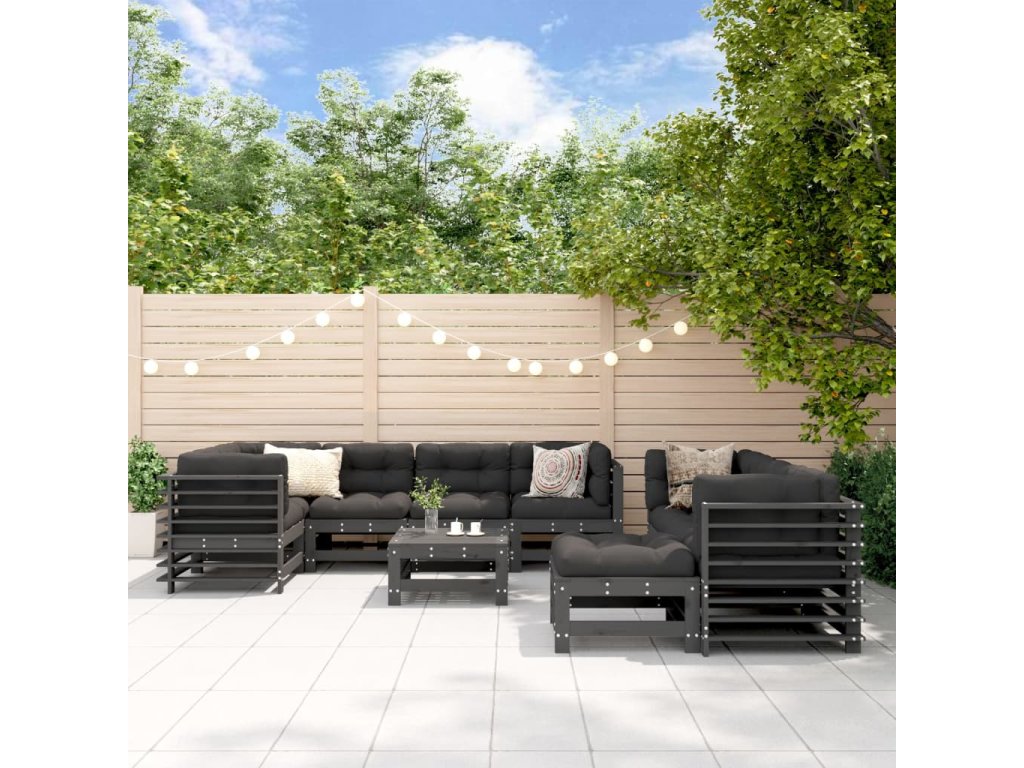 10dílná zahradní sedací souprava s poduškami šedá masivní dřevo 3186097