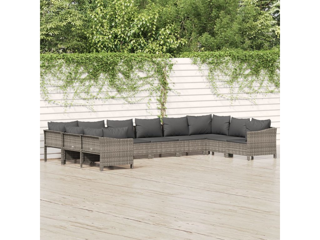 10dílná zahradní sedací souprava s poduškami šedá polyratan 3187306