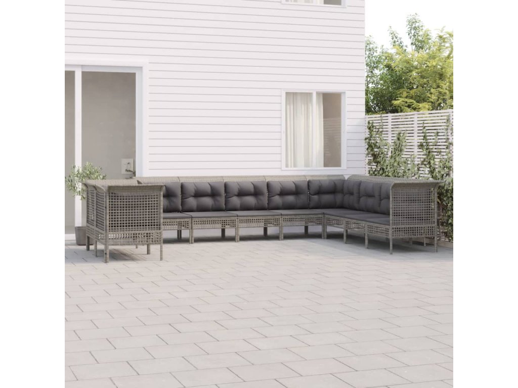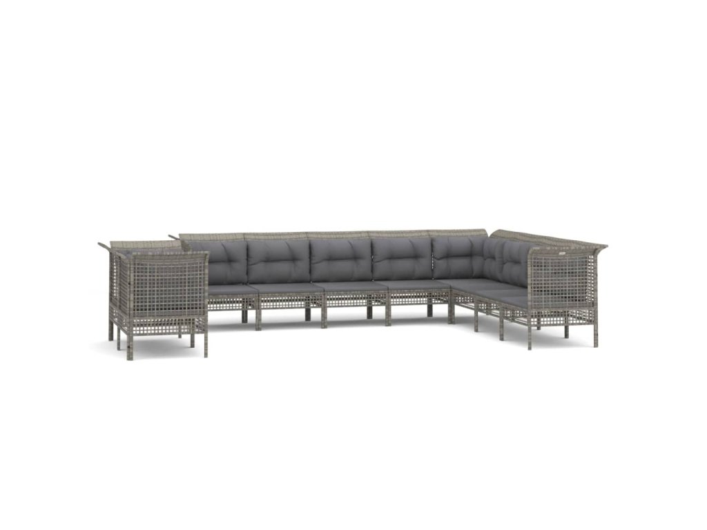 10dílná zahradní sedací souprava s poduškami šedá polyratan 3187535