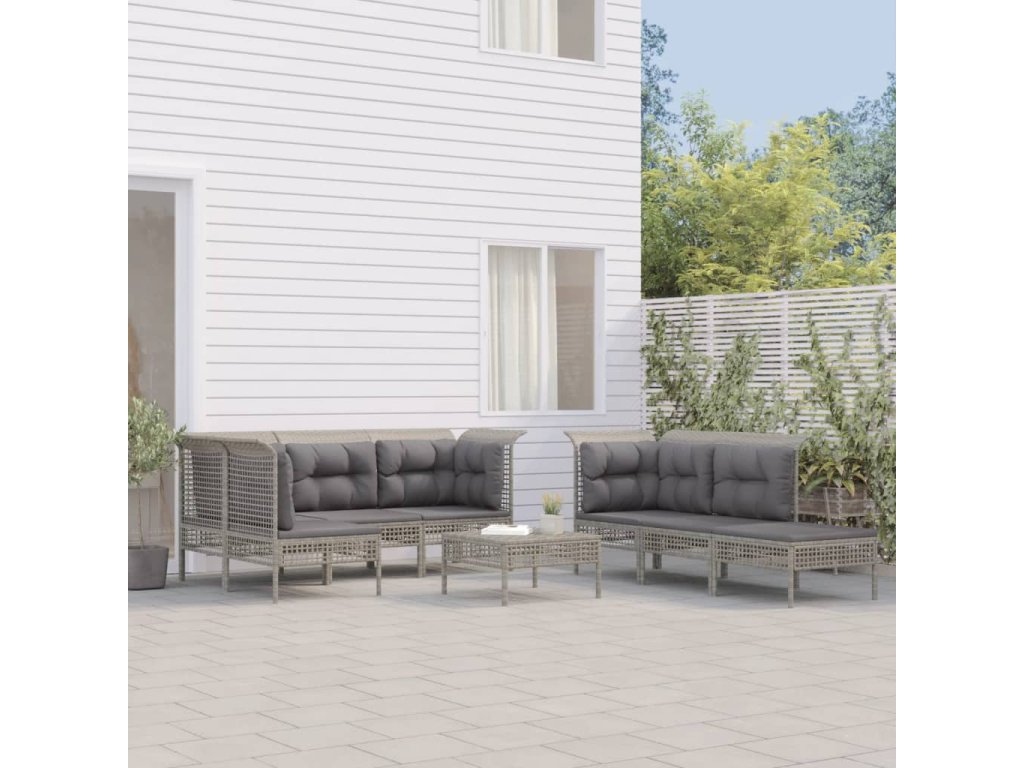 10dílná zahradní sedací souprava s poduškami šedá polyratan 3187575
