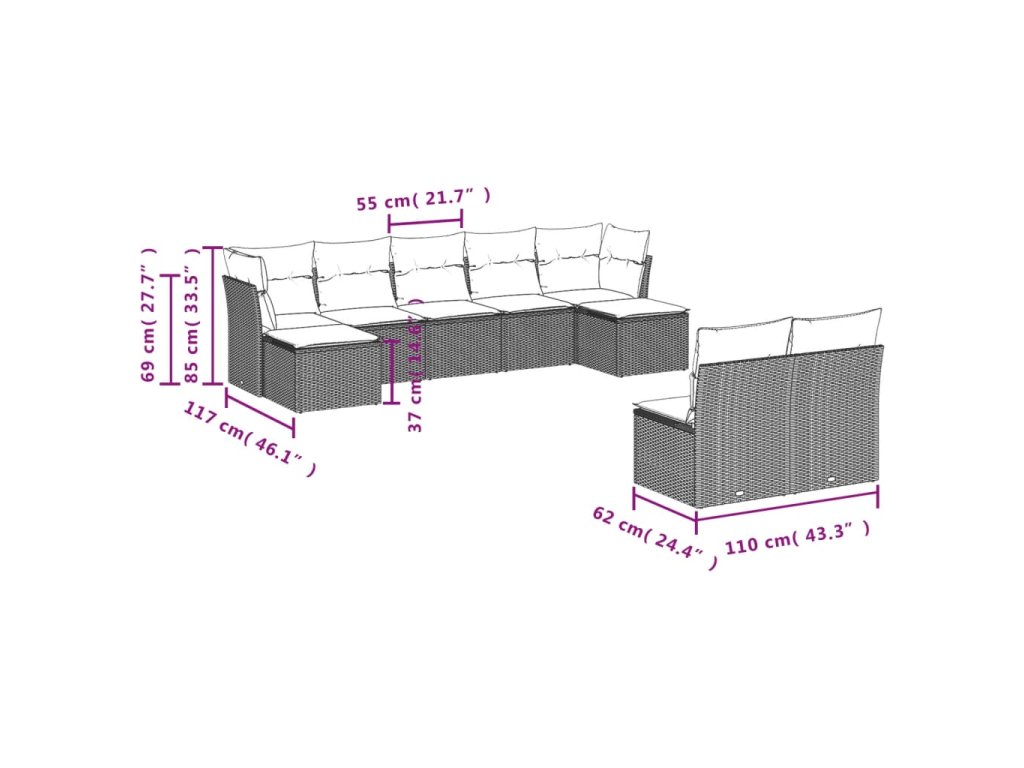 Tato zahradní sedací souprava je dokonalým doplňkem vaší zahrady, terasy nebo dvorku a poskytne vám pohodlné a příjemné místo, kde si můžete povídat s rodinou a přáteli nebo jen tak odpočívat a užívat si pobyt venku.