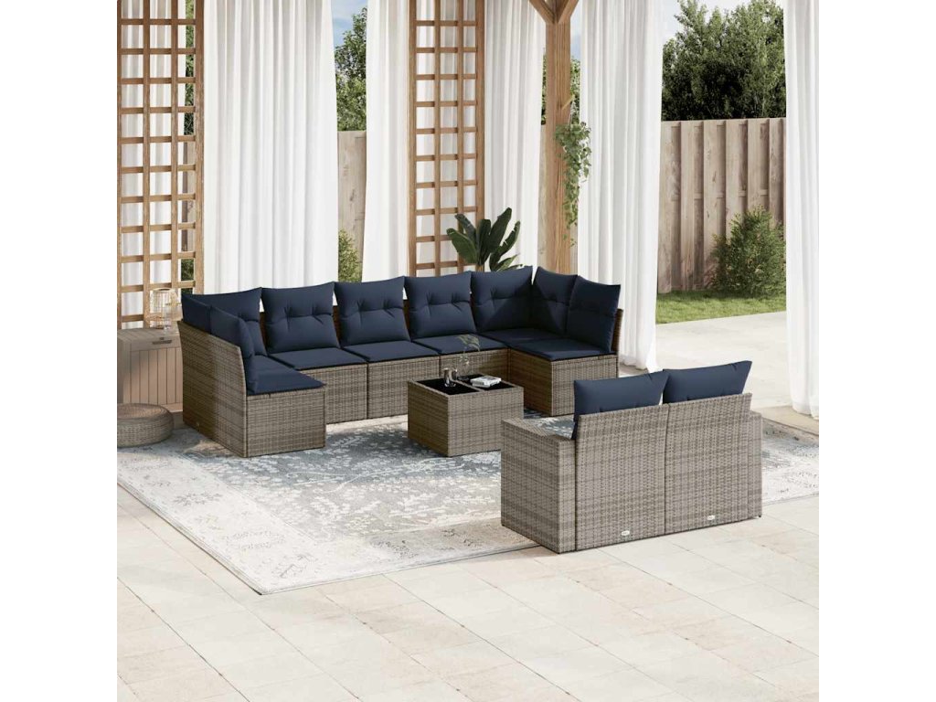 10dílná zahradní sedací souprava s poduškami šedá polyratan 3219421