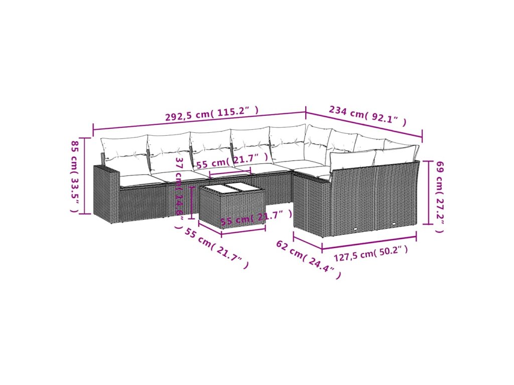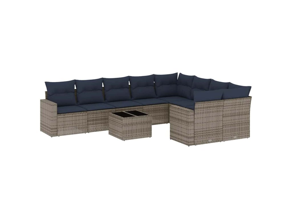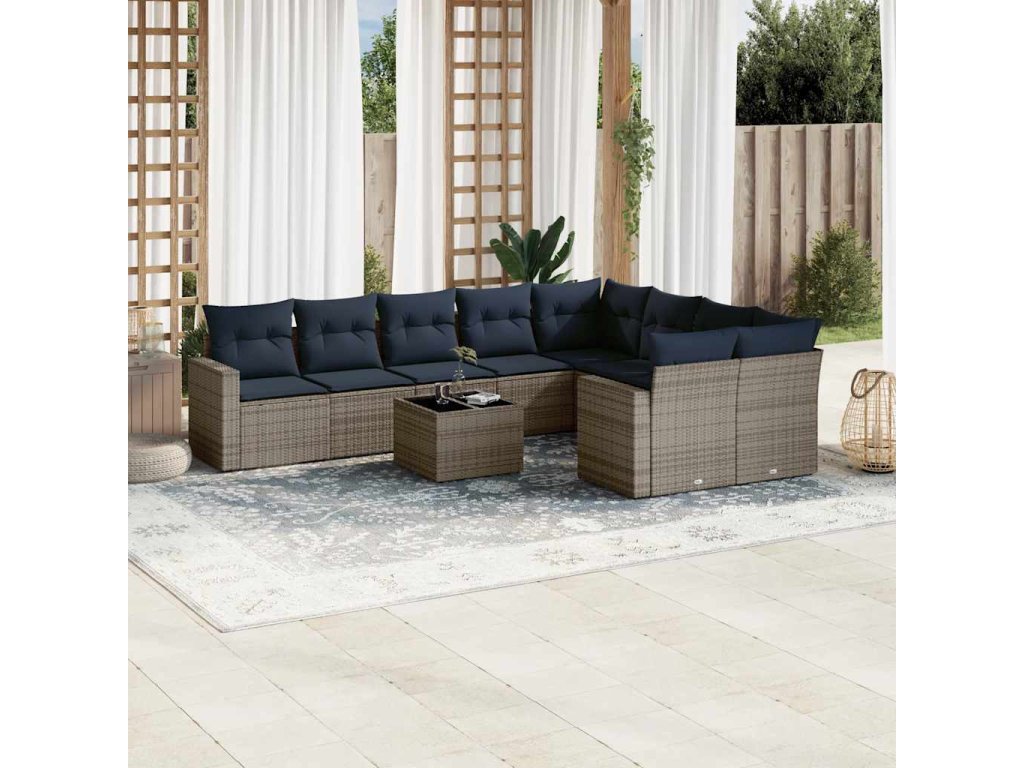 10dílná zahradní sedací souprava s poduškami šedá polyratan 3219441