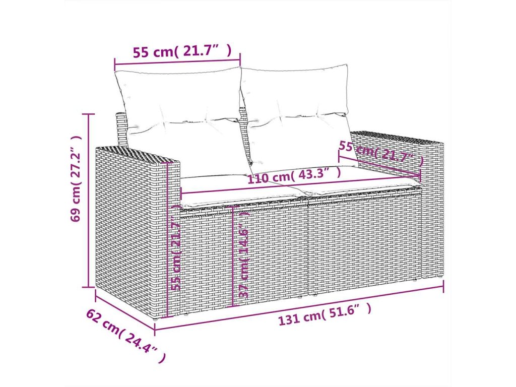 Tato zahradní sedací souprava je dokonalým doplňkem vaší zahrady, terasy nebo dvorku a poskytne vám pohodlné a příjemné místo, kde si můžete povídat s rodinou a přáteli nebo jen tak odpočívat a užívat si pobyt venku.