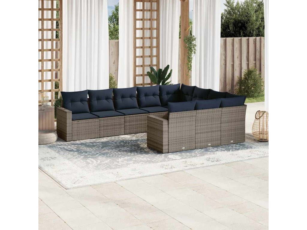 10dílná zahradní sedací souprava s poduškami šedá polyratan 3219481