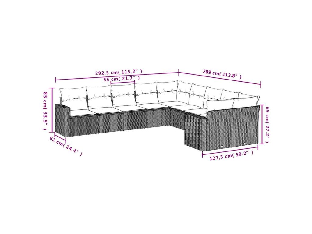 10dílná zahradní sedací souprava s poduškami šedá polyratan 3219501