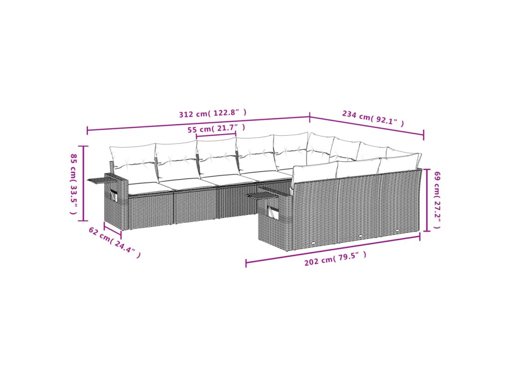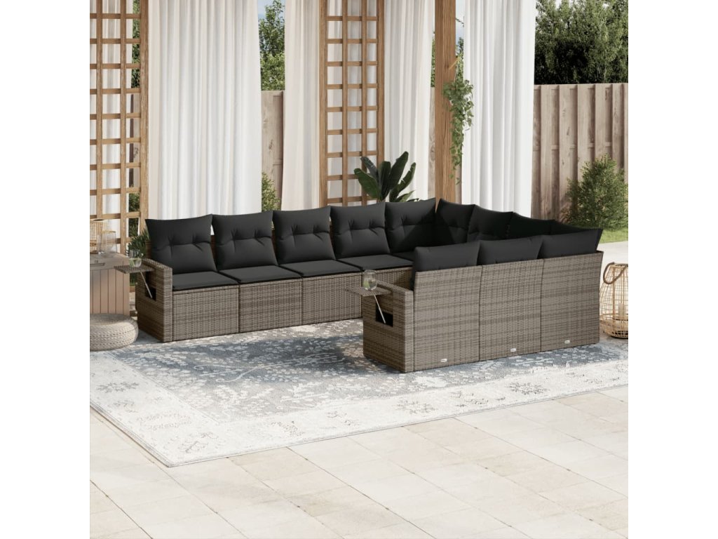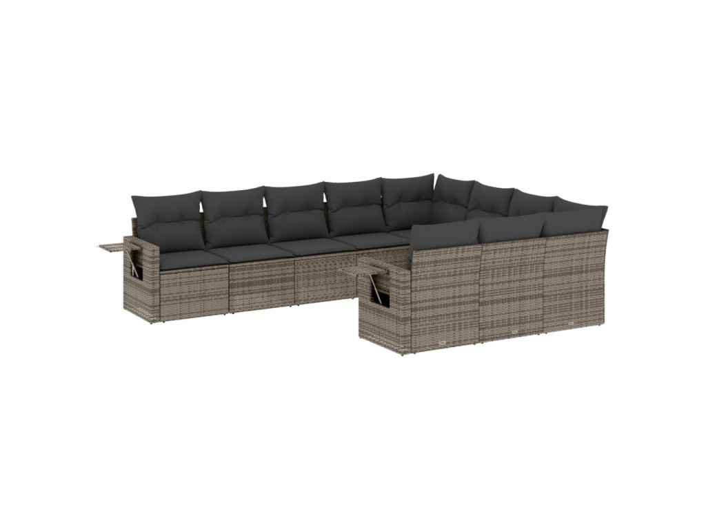 10dílná zahradní sedací souprava s poduškami šedá polyratan 3220689