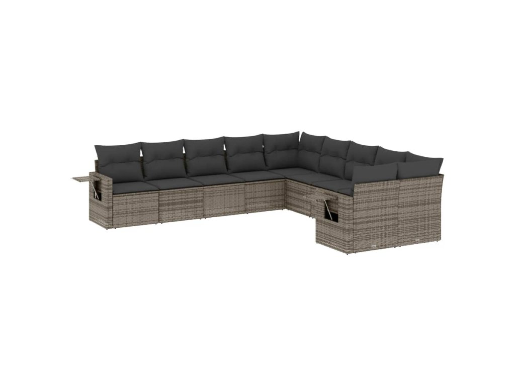 10dílná zahradní sedací souprava s poduškami šedá polyratan 3220709