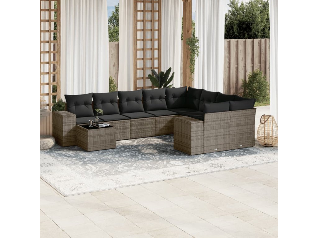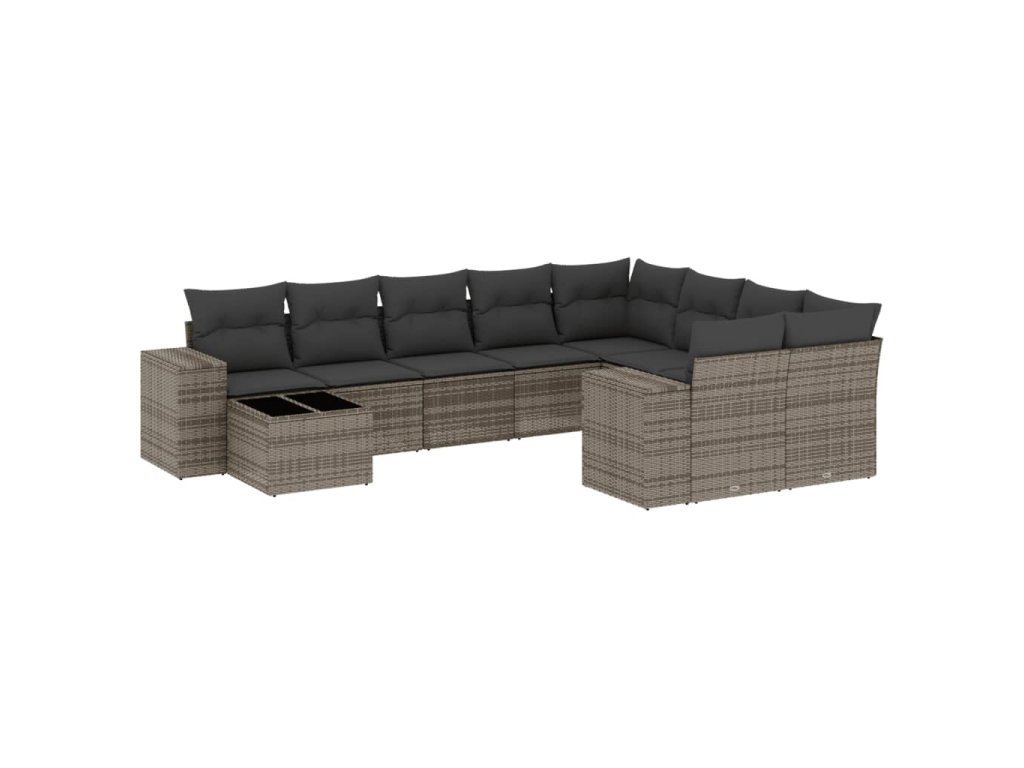 10dílná zahradní sedací souprava s poduškami šedá polyratan 3223059