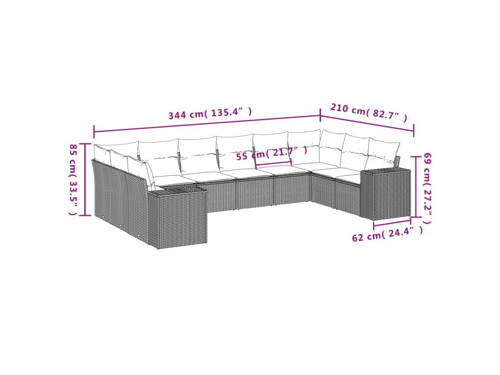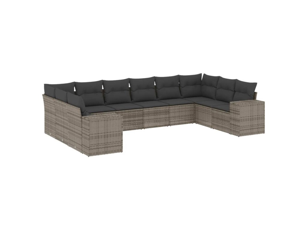 10dílná zahradní sedací souprava s poduškami šedá polyratan 3223069