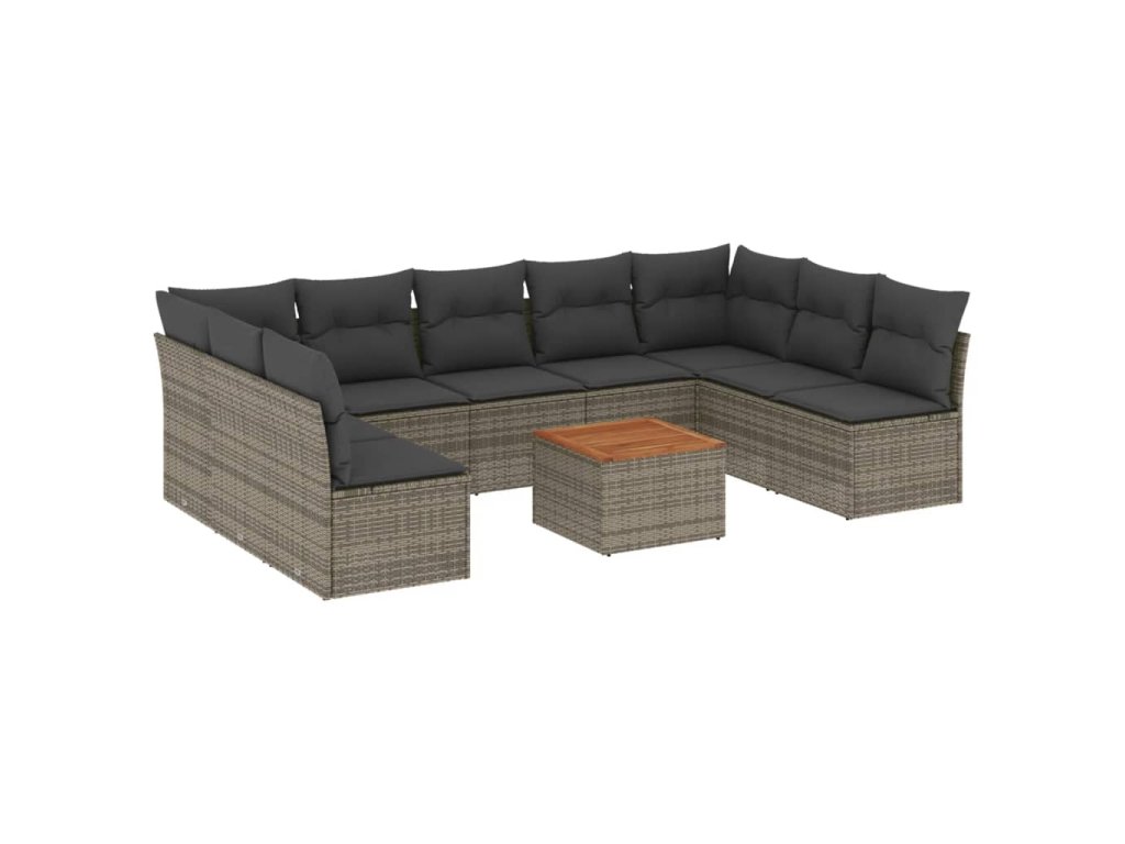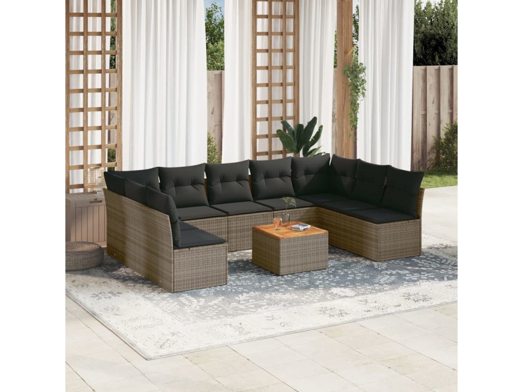 10dílná zahradní sedací souprava s poduškami šedá polyratan 3223792
