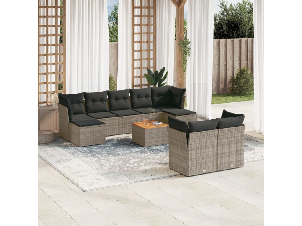 10dílná zahradní sedací souprava s poduškami šedá polyratan 3223876
