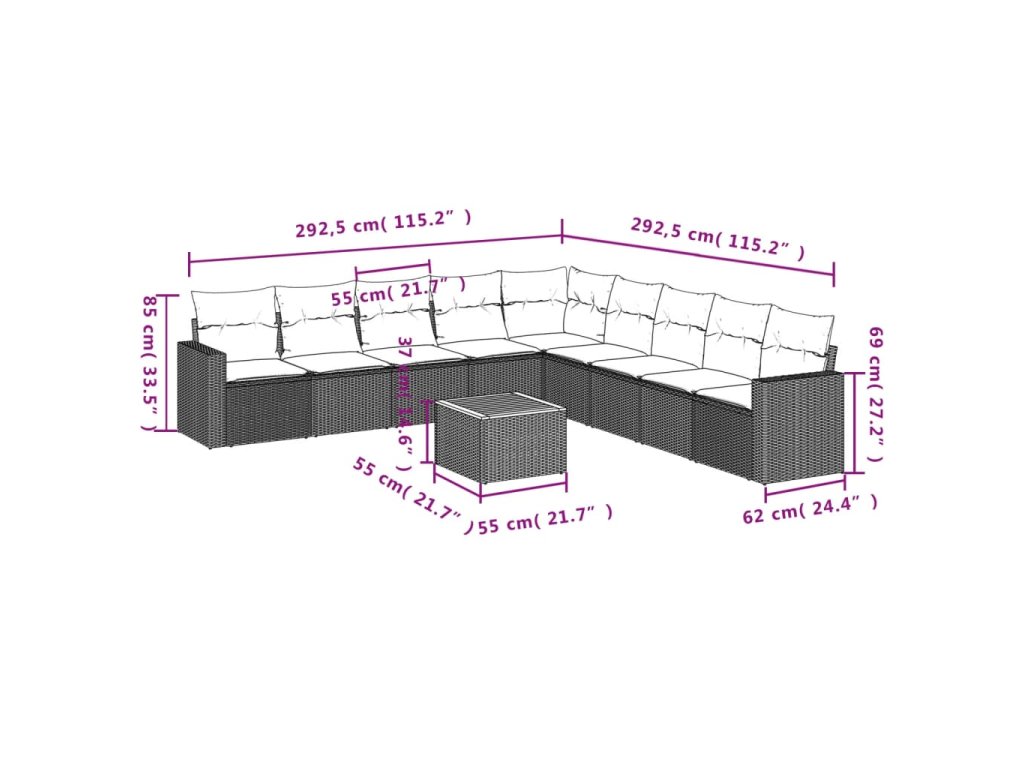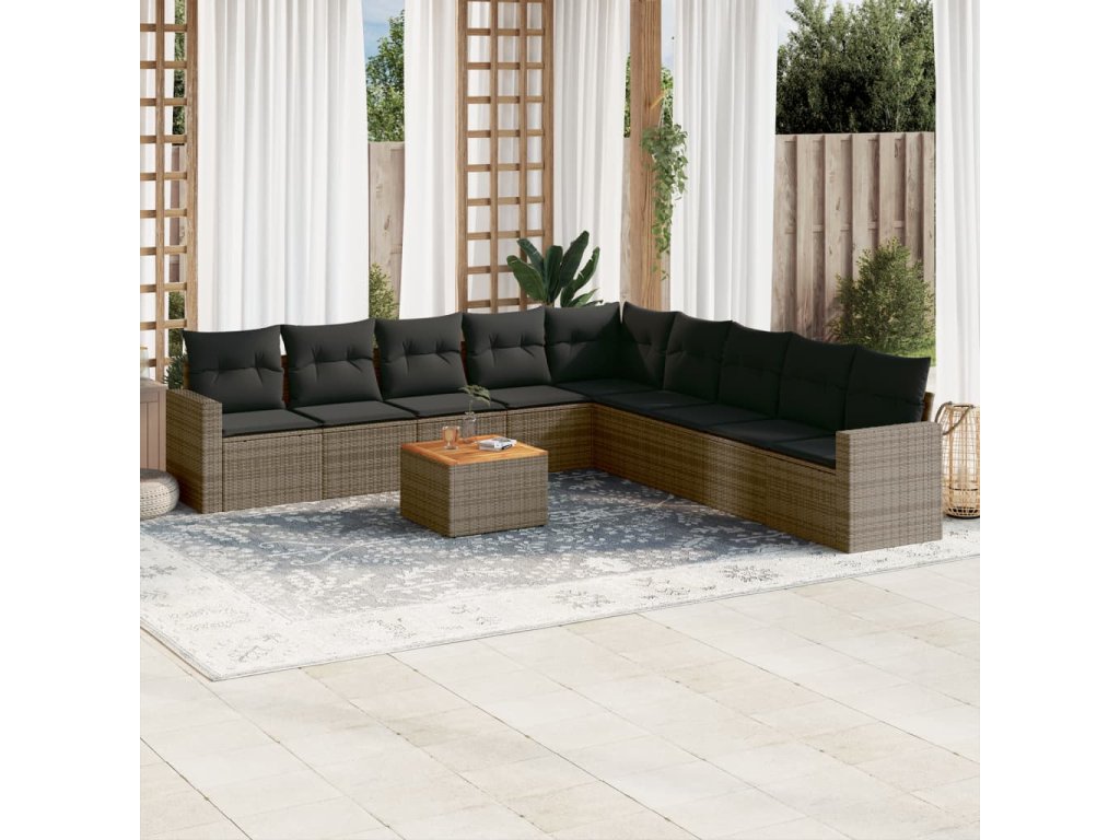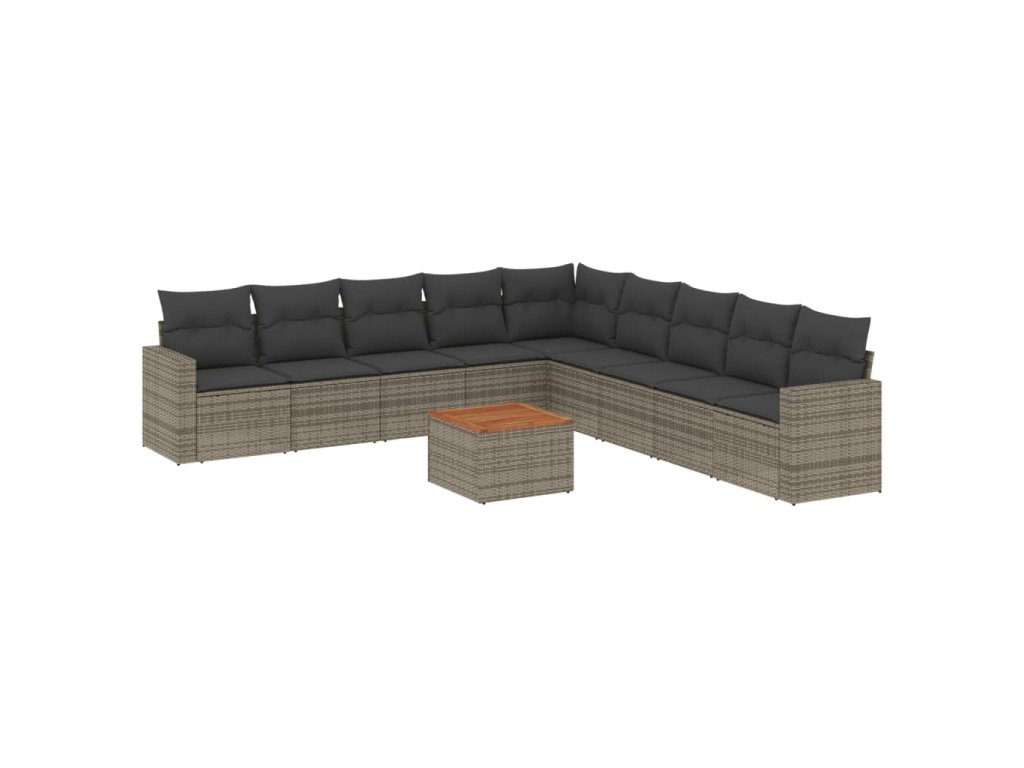 10dílná zahradní sedací souprava s poduškami šedá polyratan 3224170
