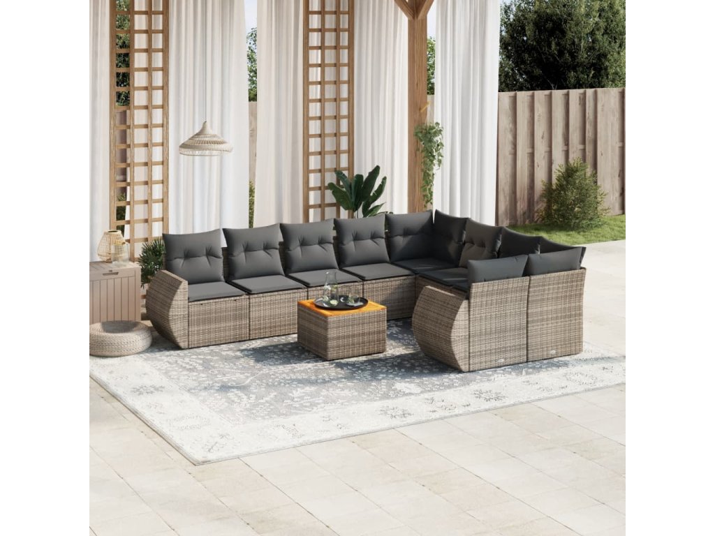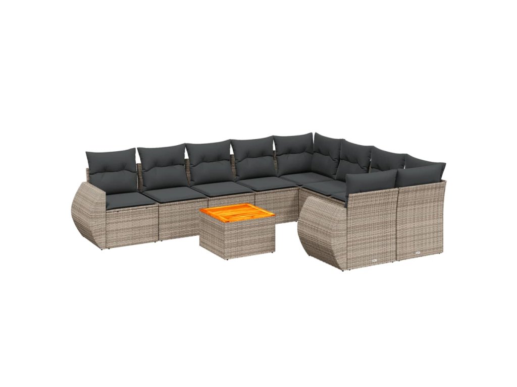 10dílná zahradní sedací souprava s poduškami šedá polyratan 3225164