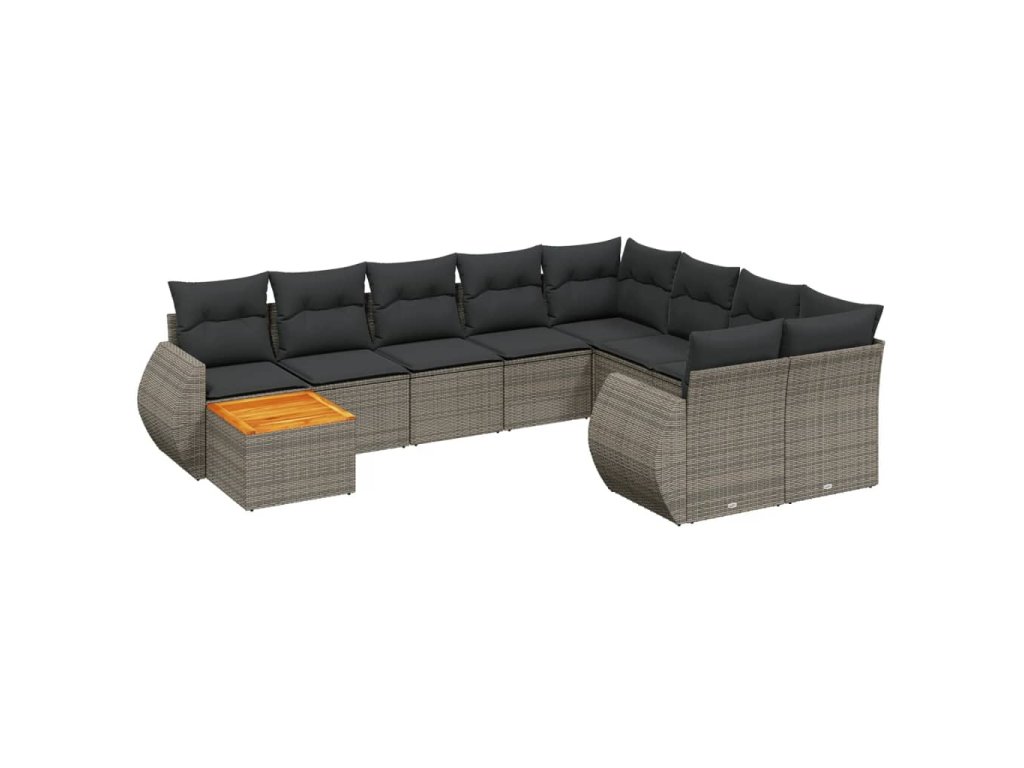 10dílná zahradní sedací souprava s poduškami šedá polyratan 3225171