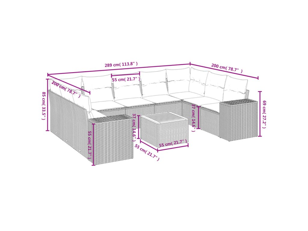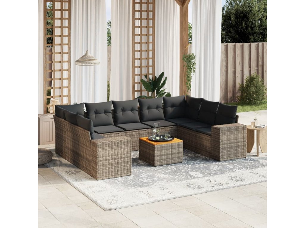 10dílná zahradní sedací souprava s poduškami šedá polyratan 3225591