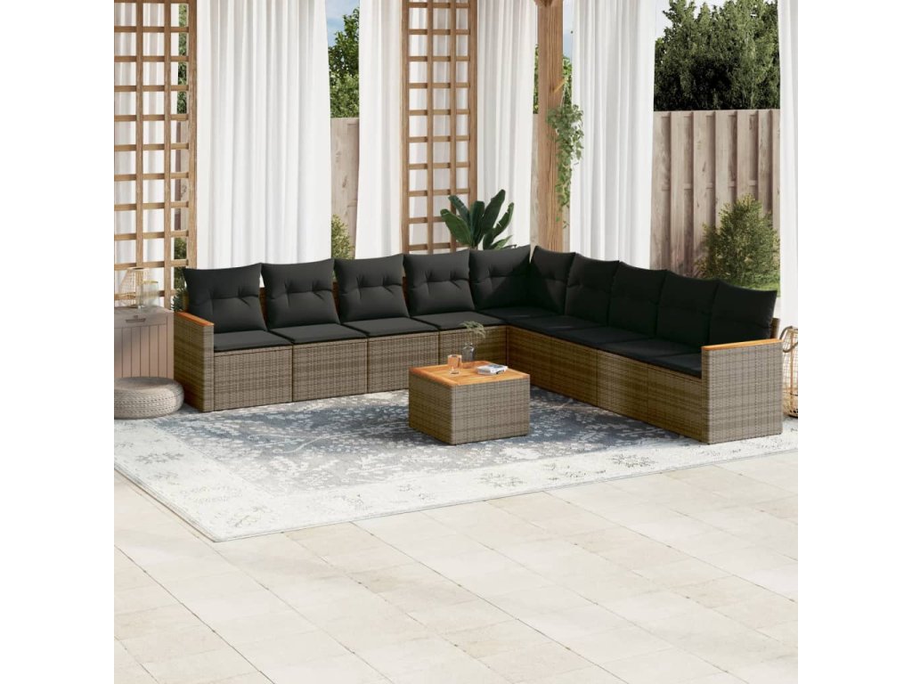 10dílná zahradní sedací souprava s poduškami šedá polyratan 3226067
