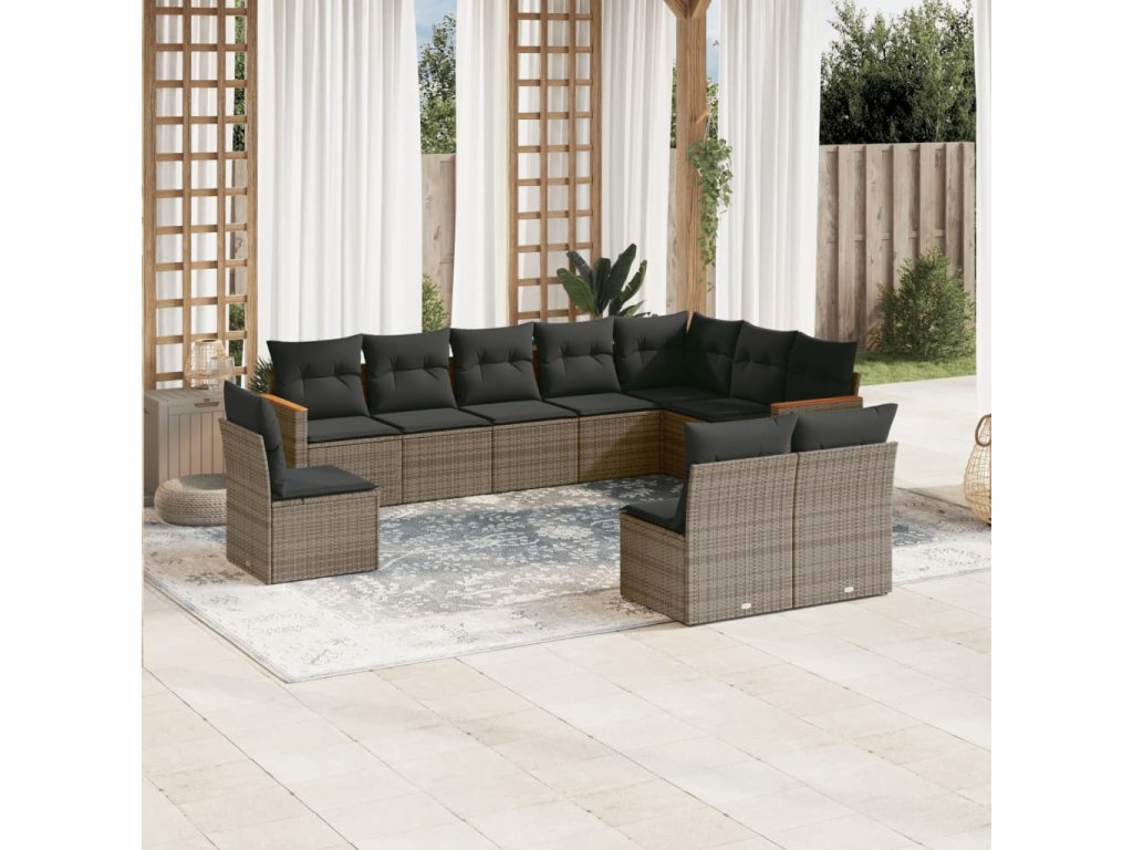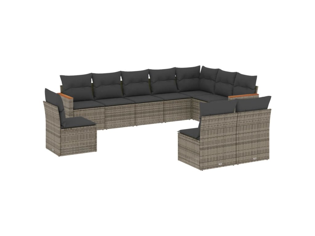 10dílná zahradní sedací souprava s poduškami šedá polyratan 3226074