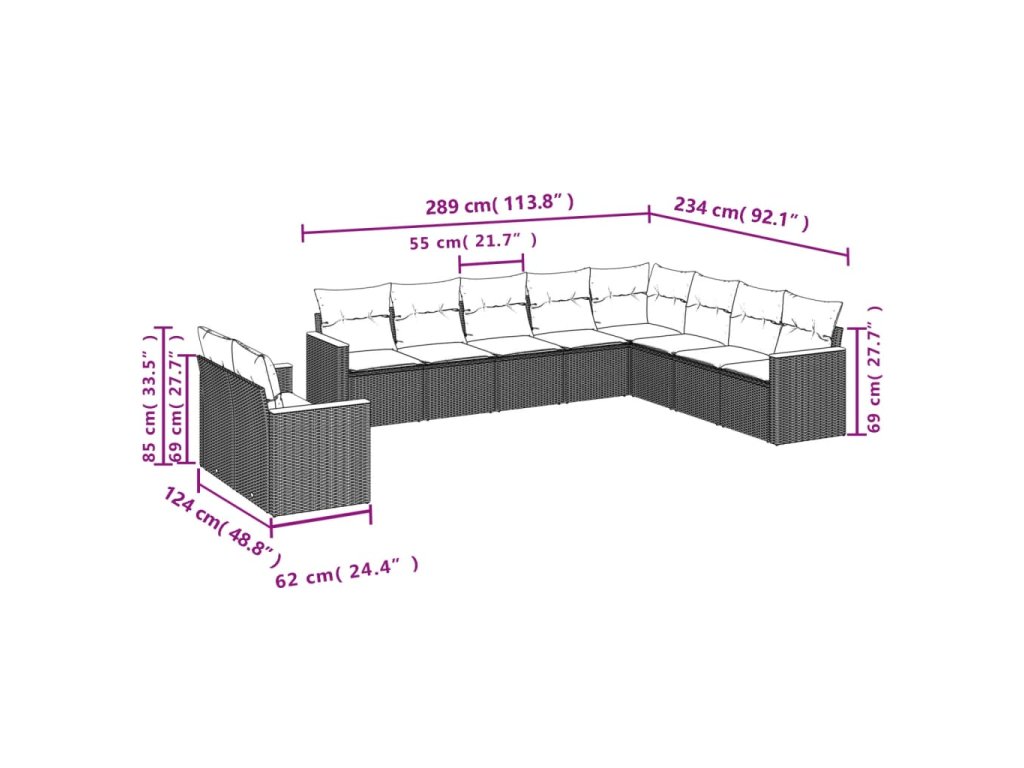 10dílná zahradní sedací souprava s poduškami šedá polyratan 3226116