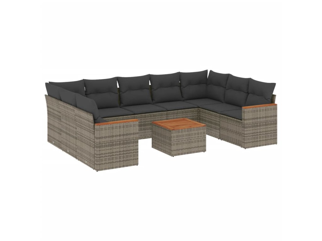10dílná zahradní sedací souprava s poduškami šedá polyratan 3226284
