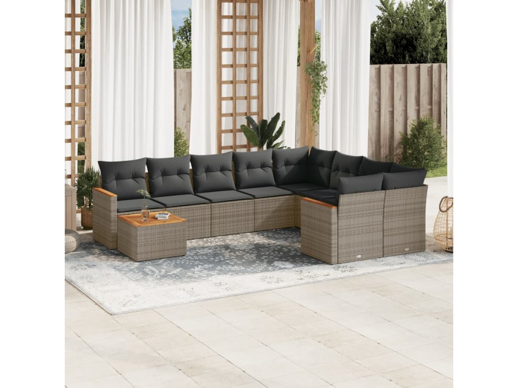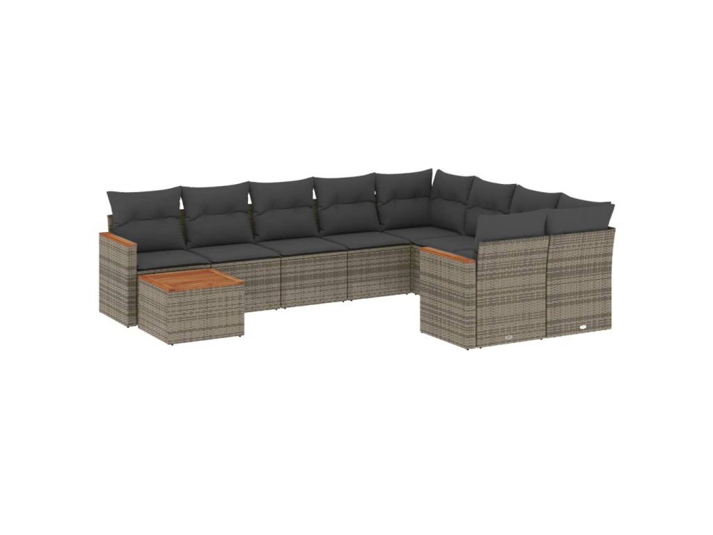 10dílná zahradní sedací souprava s poduškami šedá polyratan 3226319