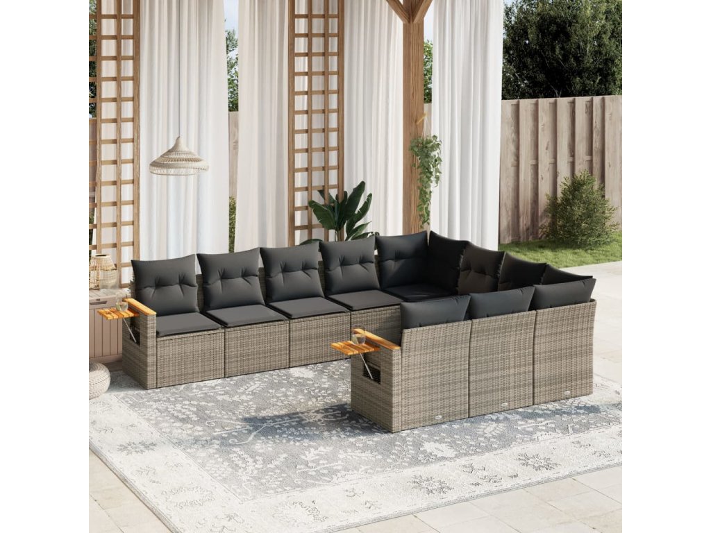 10dílná zahradní sedací souprava s poduškami šedá polyratan 3227180