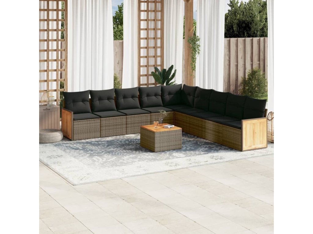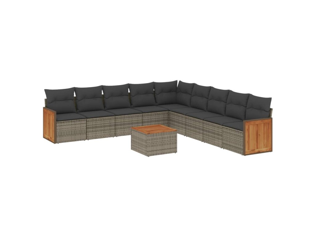 10dílná zahradní sedací souprava s poduškami šedá polyratan 3227747
