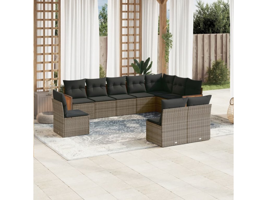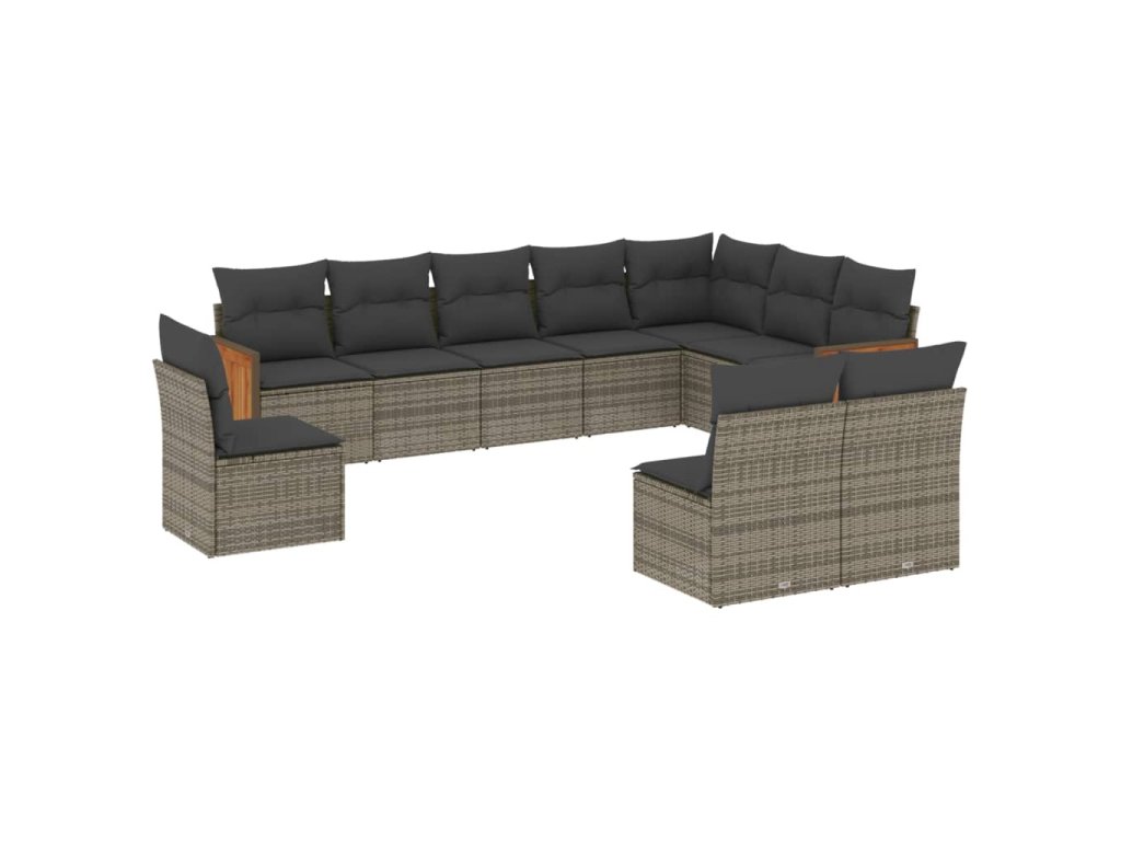10dílná zahradní sedací souprava s poduškami šedá polyratan 3227754