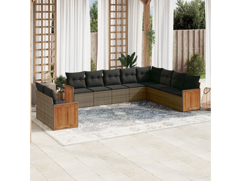 10dílná zahradní sedací souprava s poduškami šedá polyratan 3227796