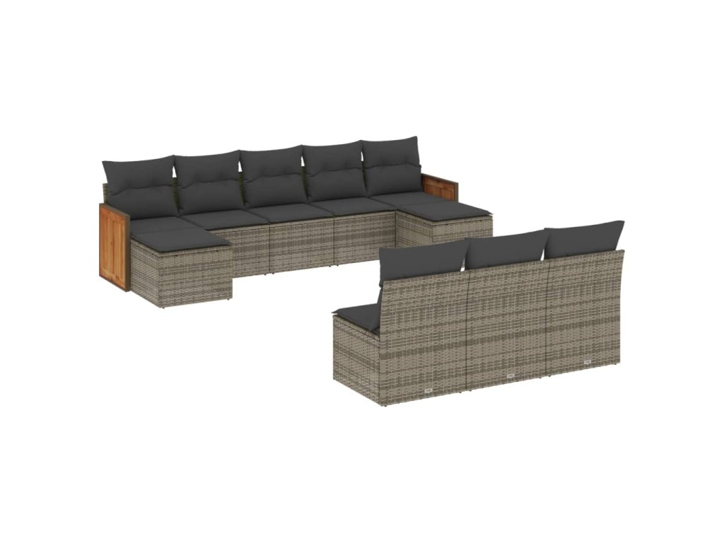 10dílná zahradní sedací souprava s poduškami šedá polyratan 3228069