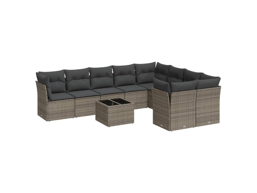 10dílná zahradní sedací souprava s poduškami šedá polyratan 3250019