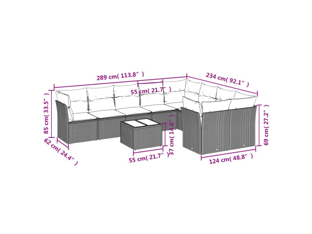 Tato zahradní sedací souprava je dokonalým doplňkem vaší zahrady, terasy nebo dvorku a poskytne vám pohodlné a příjemné místo, kde si můžete povídat s rodinou a přáteli nebo jen tak odpočívat a užívat si pobyt venku.