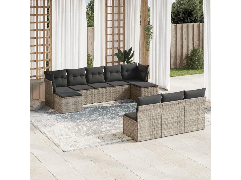 10dílná zahradní sedací souprava s poduškami šedá polyratan 3250129