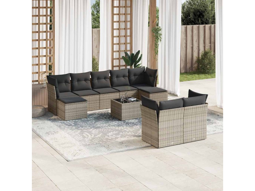 10dílná zahradní sedací souprava s poduškami šedá polyratan 3250159