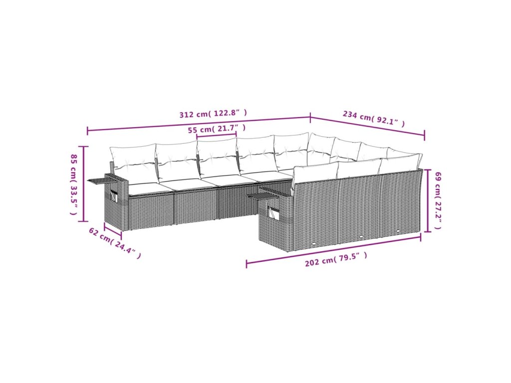 10dílná zahradní sedací souprava s poduškami šedá polyratan 3253027