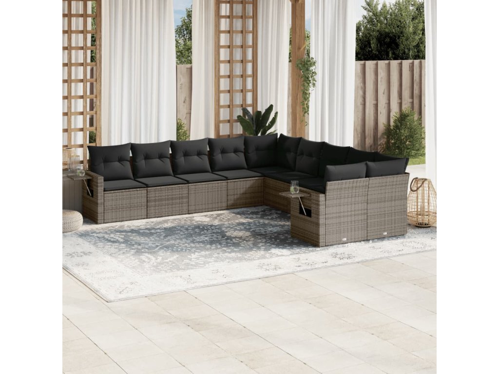 10dílná zahradní sedací souprava s poduškami šedá polyratan 3253047