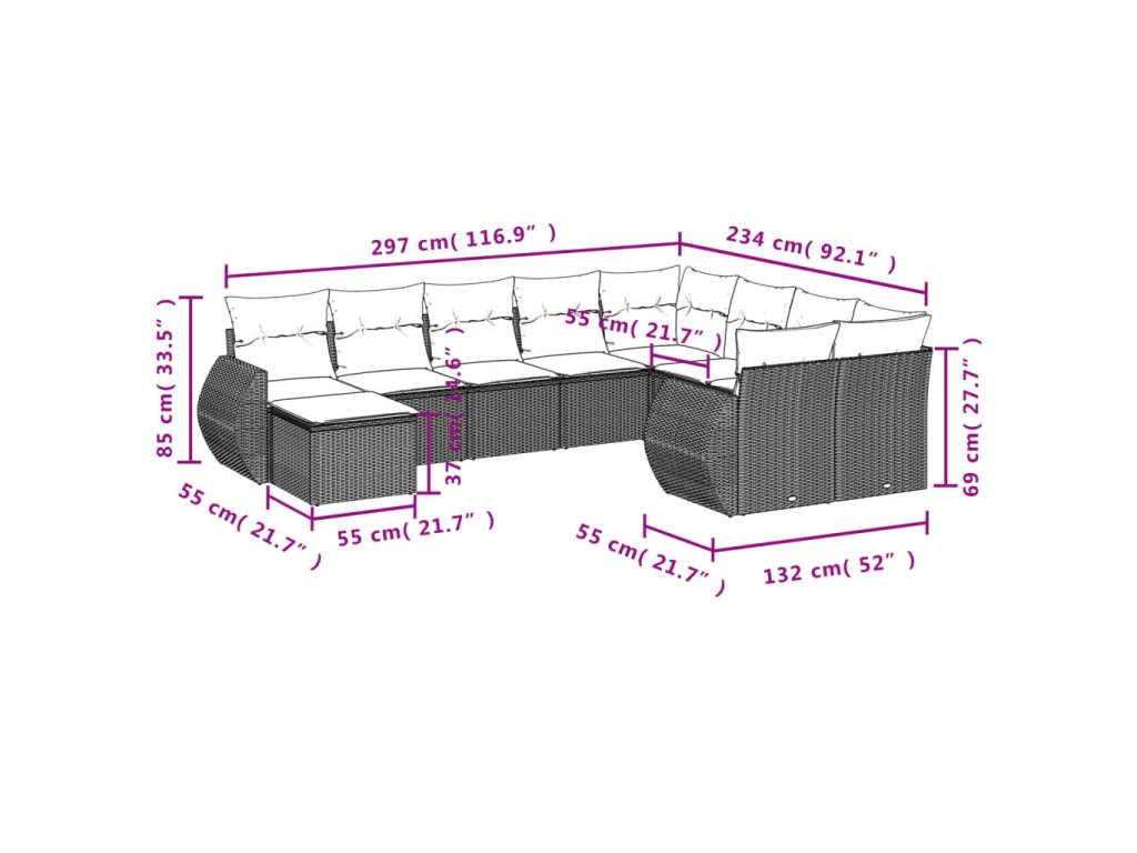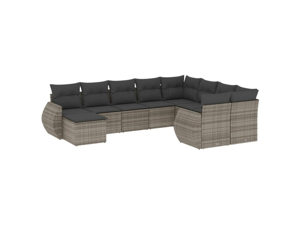10dílná zahradní sedací souprava s poduškami šedá polyratan 3254197