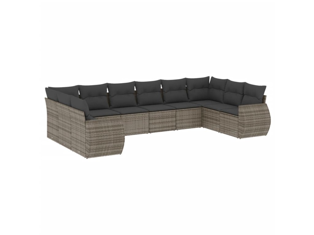 10dílná zahradní sedací souprava s poduškami šedá polyratan 3254207