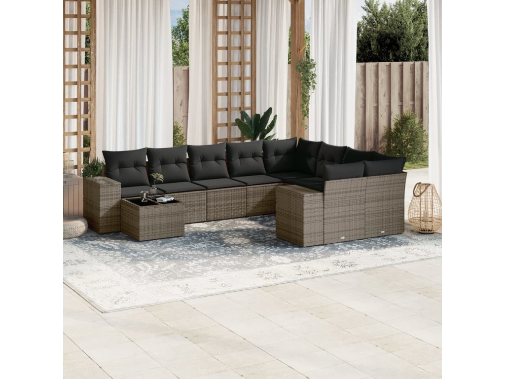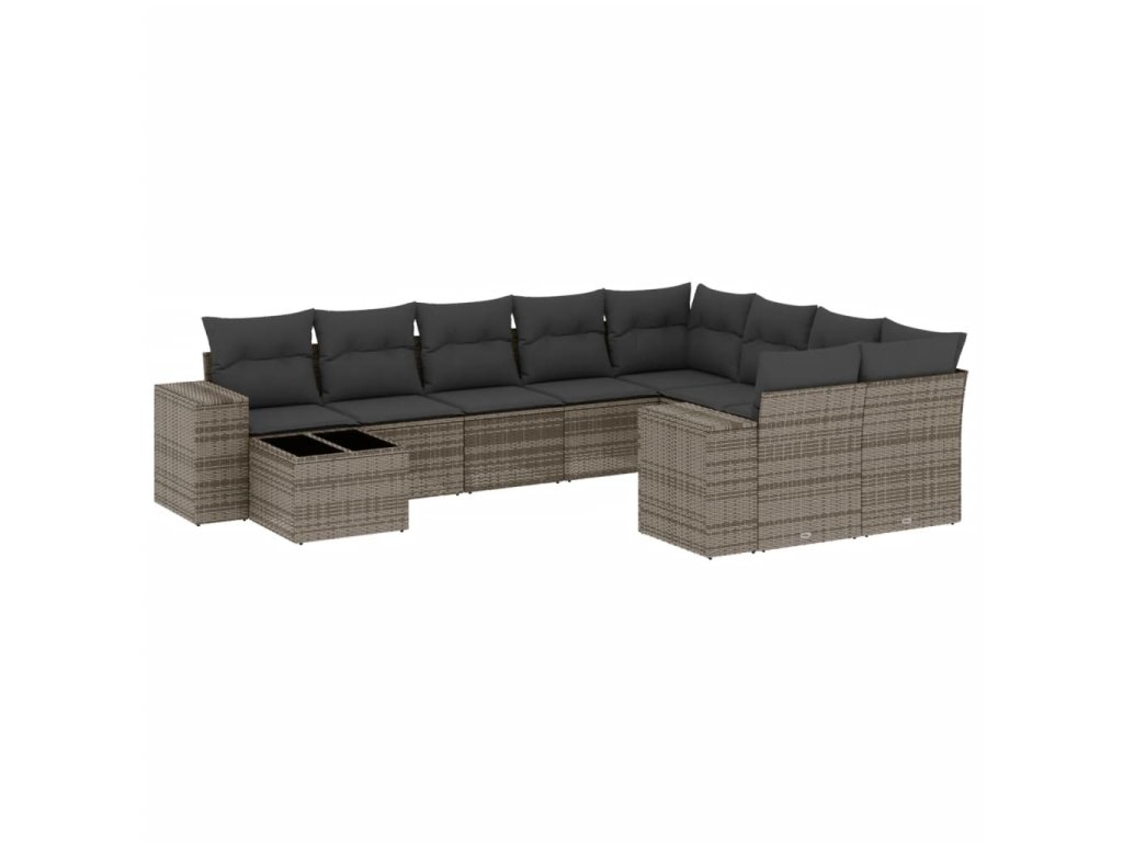 10dílná zahradní sedací souprava s poduškami šedá polyratan 3255397
