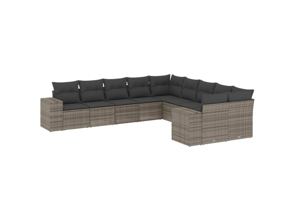 10dílná zahradní sedací souprava s poduškami šedá polyratan 3255447