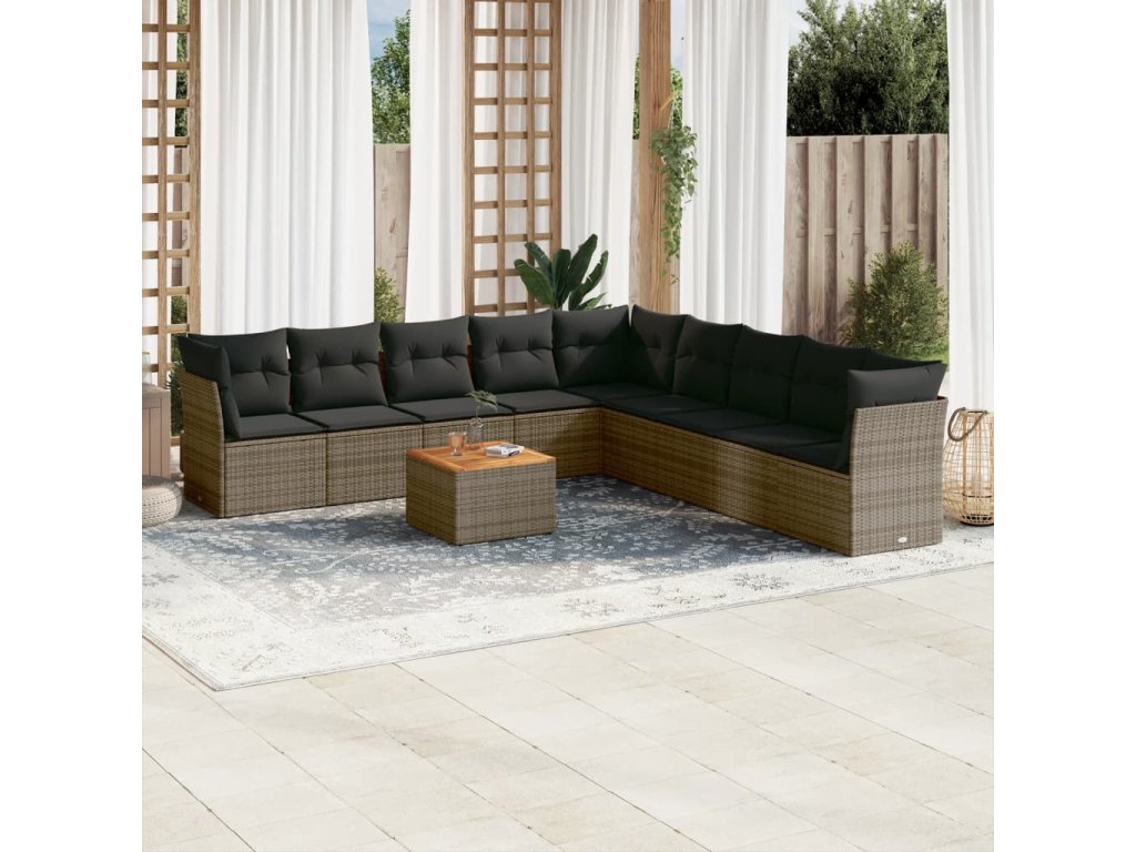 10dílná zahradní sedací souprava s poduškami šedá polyratan 3256025