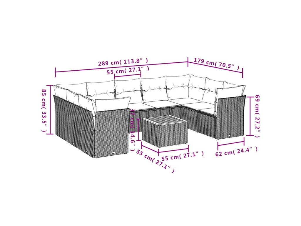 10dílná zahradní sedací souprava s poduškami šedá polyratan 3256138