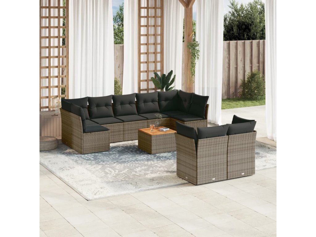 10dílná zahradní sedací souprava s poduškami šedá polyratan 3256144