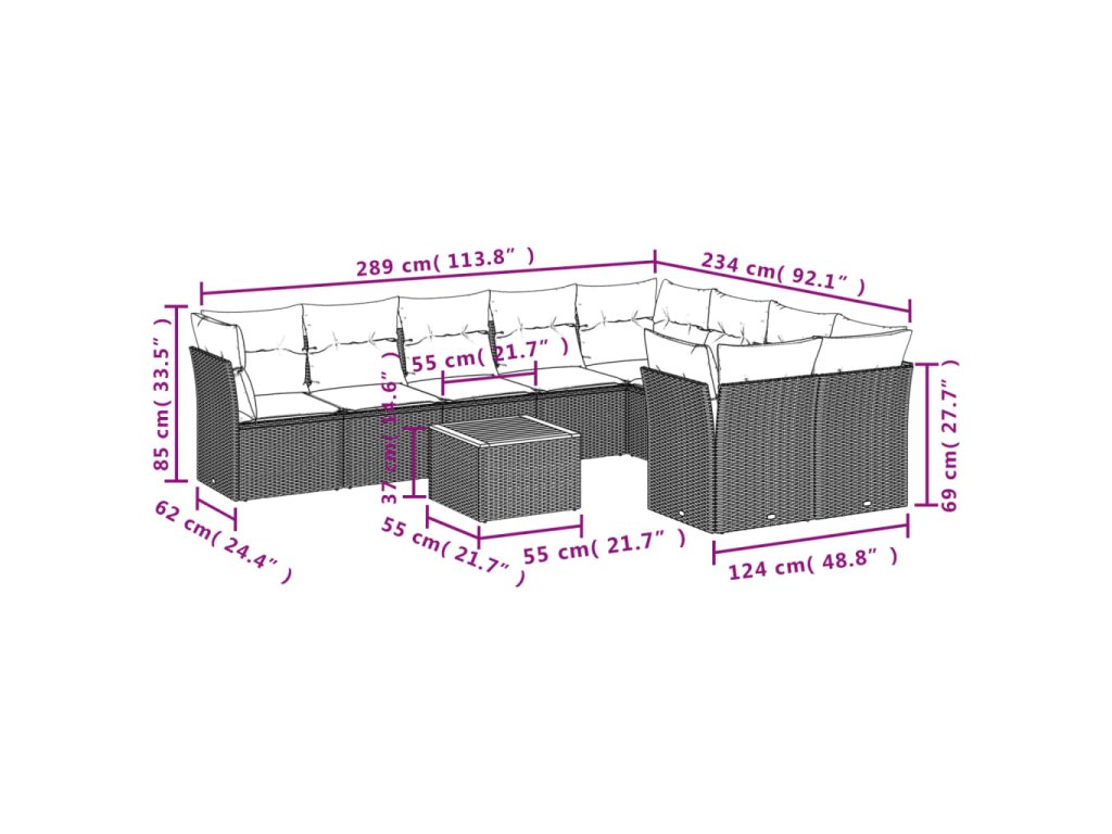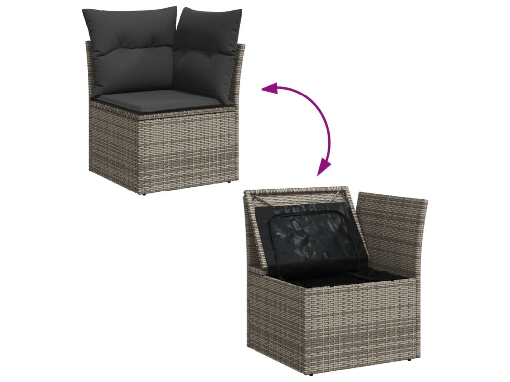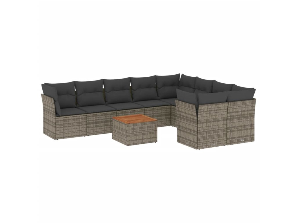 10dílná zahradní sedací souprava s poduškami šedá polyratan 3256151