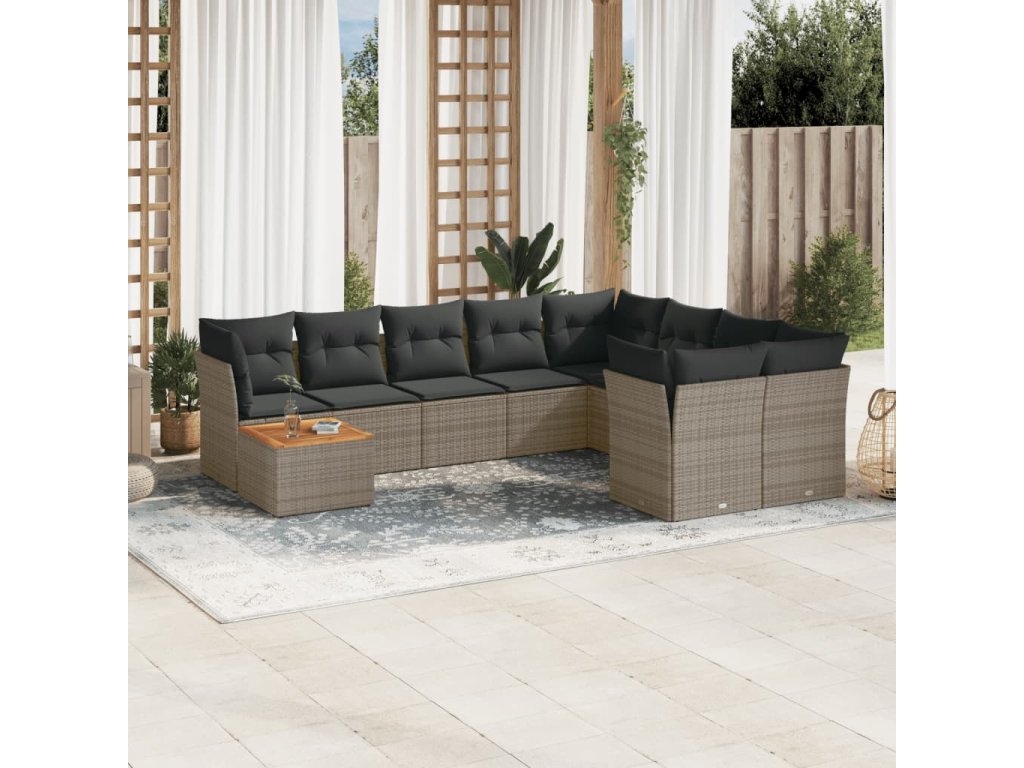 10dílná zahradní sedací souprava s poduškami šedá polyratan 3256158