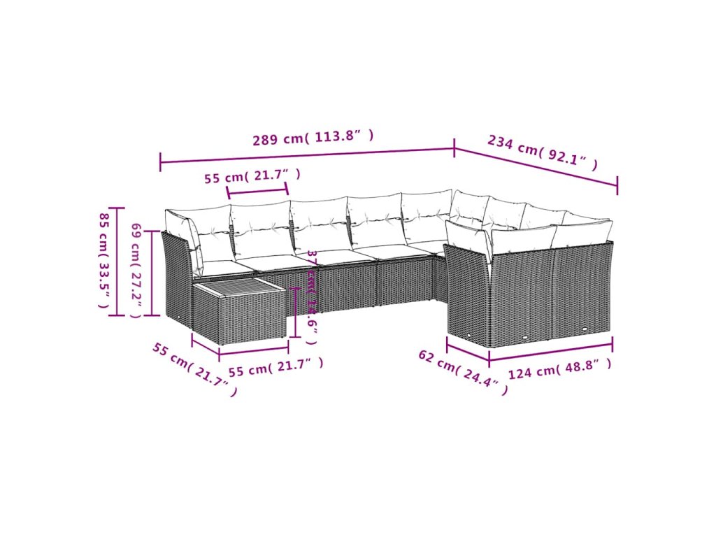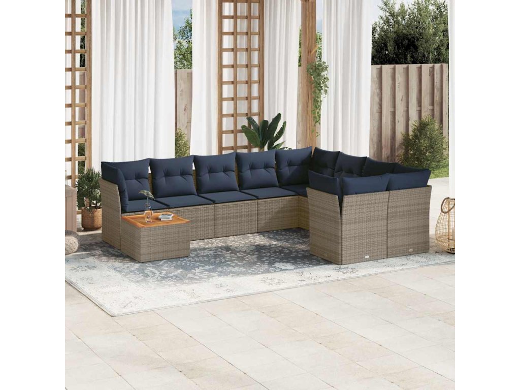 10dílná zahradní sedací souprava s poduškami šedá polyratan 3256159