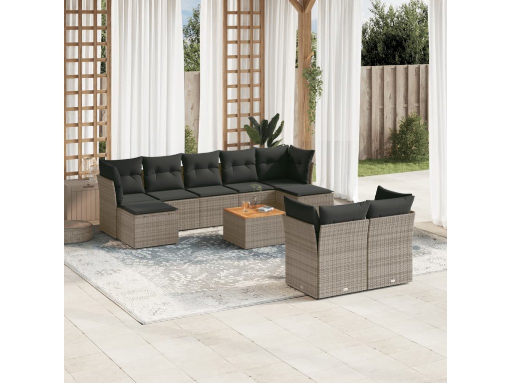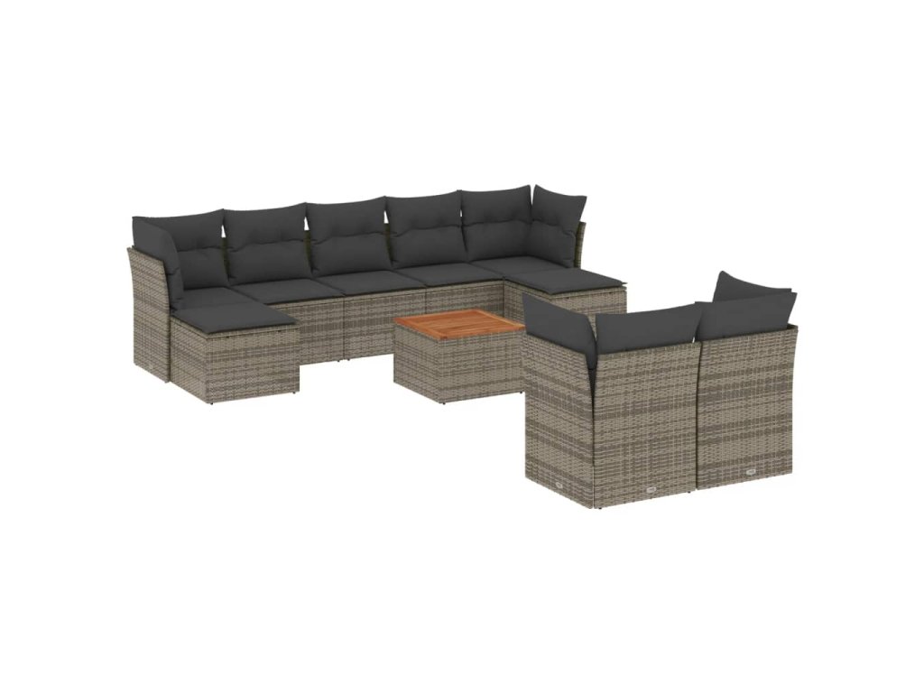 10dílná zahradní sedací souprava s poduškami šedá polyratan 3256207