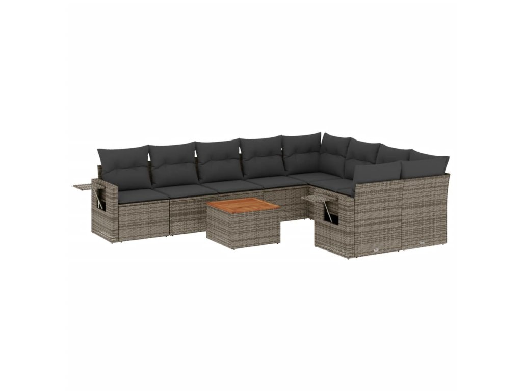 10dílná zahradní sedací souprava s poduškami šedá polyratan 3257054