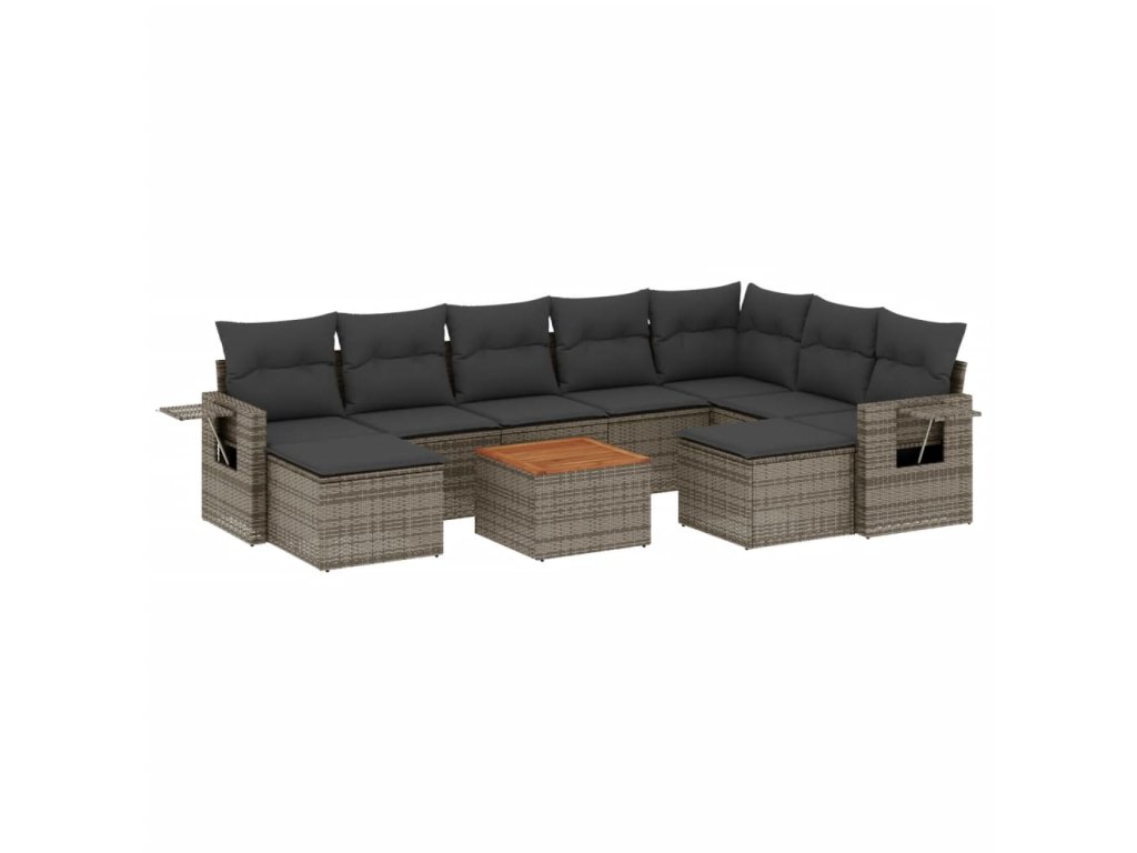 10dílná zahradní sedací souprava s poduškami šedá polyratan 3257180